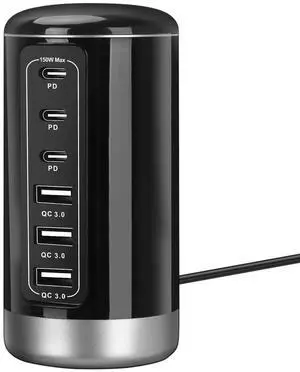 Techsmarter 5-Port USB Charging Station With 10W Wireless Charger Pad, 18W USB Port & Two 12W USB Ports. For iPhone 15, 14, 13, 12, 11, iPad, Samsung S23, S22, S21, S10, Android, Universal- Type: Charging Station