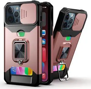 Tough Ring Holder Case with Card Slot for Samsung Galaxy A13 5G - Rose Gold
