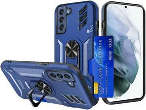 Tough Ring Holder Case with Card Slot for Samsung Galaxy S22 5G - Blue