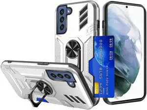 Tough Ring Holder Case with Card Slot for Samsung Galaxy S22 5G - Silver