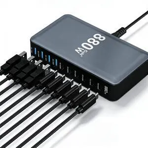 USB C Charger 880W USB C Charger Block,Upgraded GaN IV 10-Port Charging Station Hub,Travel Essentials 140W Fast Charging Laptop Adapter for MacBook Pro/Air,DELL,Steam Deck,iPhone 17/16,Galaxy S25/24