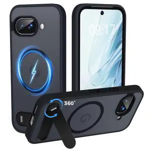 All-in-One for Google Pixel 9A Case with [360° Built-in Kickstand] & Magnetic [Compatible with Mag-Safe] Slim Translucent Cover Military-Grade Shockproof Protection (6.3",Black)