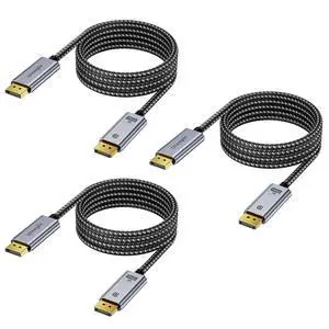 8K Displayport Cable 1.4 6.6ft Gold-Plated DP Cord (8K@60Hz 4K@144Hz 32Gbps) HDR DP to DP Cables Compatible with Gaming PC Laptops Monitor Computer Projector [3 Pack]