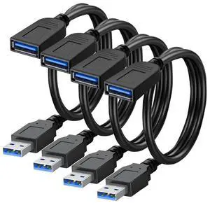 4 Pack Short Length 30cm USB 3.0 Extension Cable, Male to Female Extender Cable, USB 3.0 Extender Cord