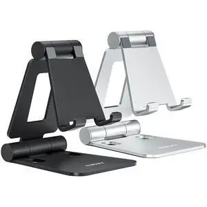 2 Pack Fully Aluminum Dual Folding Cell Phone Stand, Adjustable Foldable Desktop Phone Holder for Desk Compatible with iPhone 17 16 15 14 13 12 11 Pro Max Xs Xr X 8, All Phones, Black & Silver- Brand: LAX