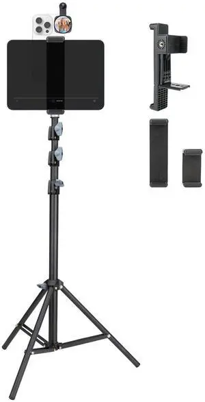 Large Screen Teleprompter Holder for Tablet & Phone with 70.8" Extendable Tripod, Dual Device Design, Compatible with iPad/iPhone/Samsung and More. Perfect for Live Streaming/Video Recording