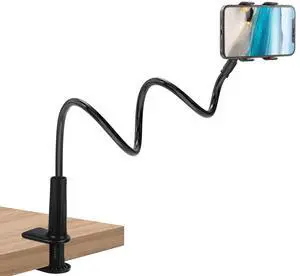 Gooseneck Phone Holder for Bed 360° Flexible Adjustable Clamp, Long Arm Gooseneck Bracket for Desk Headboard Bedside, Compatible with iPhone 16 15 Pro Max XR X 8 7 & 3.5-7" Devices (Black)