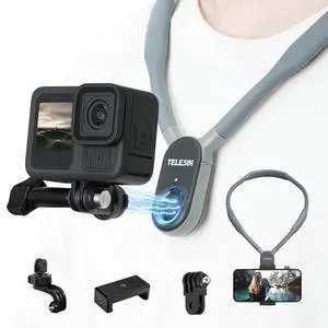 TELESIN Plus Magnetic Neck Mount for Go Pro Phone Holder, Quick Release POV Video Vlog Flexible Angle Necklace Holder for GoPro Hero 13-5 Insta360 X5 X4 X3 Osmo Nano Action 3 4 5 Pro 6 iPhone Android