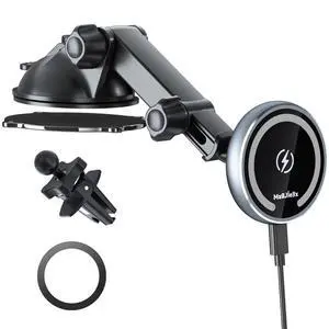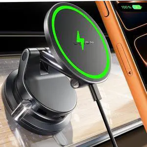 Meifigno for MagSafe Car Mount Charger, 15W Wireless Charger Stand with Vacuum Suction Cup, Magnetic Phone Holder for Car, for iPhone 17 Pro Max 16-12 & Android, 360°Adjustable & Foldable Phone Stand