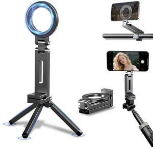Aluminum Magnetic Tripod for iPhone 17/16/15/14 Pro Max Air, 360° Adjustable for MagSafe Tripod Mount Stand, Content Creator Phone Holder Airplane Travel Essentials Accessories