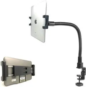 ChargerCity Aluminum Rod Heavy Duty Restaurant Togo Takeout Tablet Smartphone Clamp Mount with Easy-Secure Holder & 22" Gooseneck Arm Best for UBER EATS | DOORDASH | Grub Hub Orders