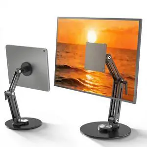 Suction Cup Mount for CarPlay Display, Backup Camera Monitor, Extended Arm with 360° Rotation, 4-Tab Bracket Replacement Dashboard Windshield Holder for 7-11" Apple Carplay, Android Auto Screens