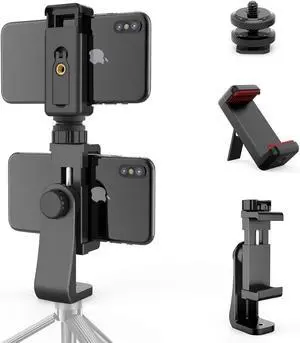 Universal Cell Phone Tripod Mount Adapter Camera Hot Shoe Phone Holder Clamp with 360 Rotation Bracket 1/4 Screw Hole for Canon Nikon Sony DSLR iPhone Android