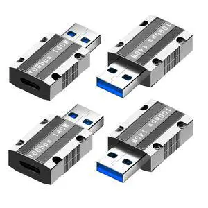 10Gbps USB C Female to USB Male Adapter, Zinc Alloy Type C to USB A Adapter High-Speed Data Transfer, USB3.1 Type C to Type A Charger Converter OTG Fast Charging Compatible(4Pack)