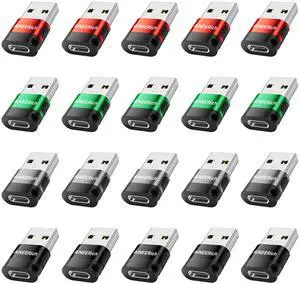 USB to Type C Adapter 20 Pack,USBC Female to USBA Male,USB Adapters,Type-C Converter Adaptor for iPhone 16 15 14 13,MacBook Pro,iPad,Samsung Galaxy,Multi Color