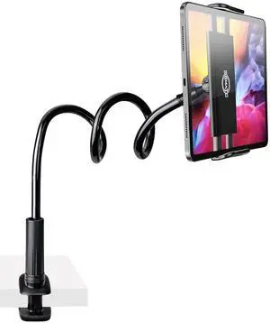 Gooseneck Tablet Holder Phone Stand, Flexible Tablet Mount for Bed, 360 Adjustable Lazy Arm Holder Clamp Mount for iPad Air Pro mini, Samsung Galaxy Tabs, iPhone, Switch, 4.0~10.5" (Black)