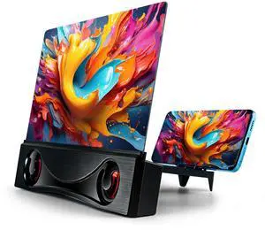 12" Phone Screen Magnifier with Speaker Mini 3D HD Foldable Amplifier for Movies & Gaming-Portable Home Theater Clear Audio,Supports All Smartphones for Family,Seniors,Travel