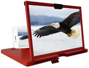 Screen Magnifier Amplifier, 12'' Mobile Phone 3D HD Magnifying Projector with Foldable Stand Holder, Phone Screen Magnifier for Movies Videos Gaming, Compatible with All Phones(Red)