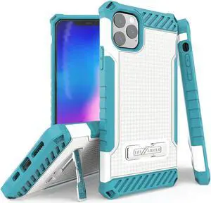 White Turquoise Rugged Case Kickstand Cover Lanyard Strap for iPhone 11 Pro