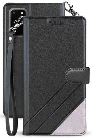 BLACK/BROWN WALLET CASE STAND + WRIST STRAP FOR SAMSUNG GALAXY S9