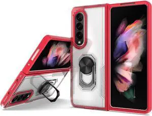 Translucent Series Hybrid Case with Ring Grip for Samsung Galaxy Z Fold 4 - Red