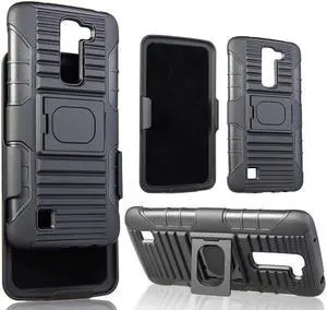 BLACK GRIP RING CASE + BELT CLIP HOLSTER STAND FOR LG TRIBUTE-5, TREASURE, K7