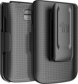 Hard Case and Belt Clip Holster Holder Combo for TCL Flip 3 Phone - Black
