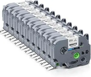 Absonic 10-Pack 24mm .94 Laminated White Tz Label Tape Compatible for Brother Tze-251 Tze251 Tz251 Tz-251 P Touch Label Refill 1" White Tze Label Maker Tape 0.94" for PTD600 PTD610BT PTP710BT PTE550W
