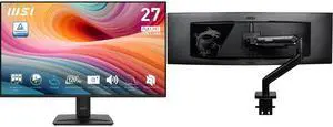 MSI 27" Full HD 120Hz IPS with Adaptive Sync Built-in Speaker Computer Monitor for both work and gaming PRO MP275 E2 MSI MAG MT201 - Premium Heavy Duty Single Monitor Stand Arm, Supports 17-49" Screens and 44 lbs, VESA Compatible, Adjustab
