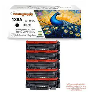 5 Pack 138A W1380A Black Toner Cartridge Compatible for HP 138A Laser jet Pro 3001dw Laser jet Pro 3001fdw Laser jet Pro MFP 3101fdw With Chip