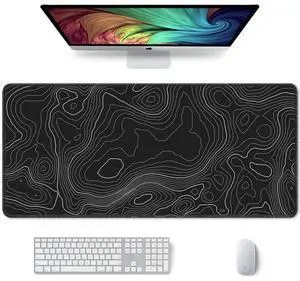 Large Mouse Pad, XXL Desk Pad, Extened 35" x 15", Non-Slip Rubber Base, Stitched Edges, Superior Surface, Waterproof Keyboard Mat, Large Mousepad for Gamer, Office & Home, Black Contour