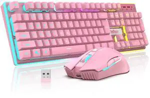RedThunder K10 Wireless Gaming Keyboard and Mouse Combo, RGB Backlit Rechargeable 3800mAh Battery, Mechanical Feel Anti-ghosting Keyboard + 7D 3200DPI Mice for PC Gamer(White Pudding)