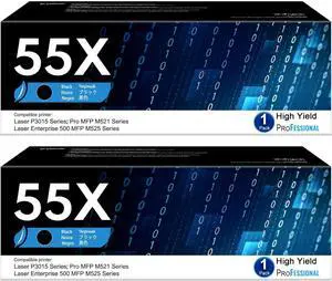 CE255X 55X Black High Yield Toner Cartridge with Chip 2 Pack, 55X Black Toner Cartridge Replacement for HP 55X Toner 55A for Enterprise 500 MFP M525, Enterprise P3015, Pro MFP M521 Series Printer