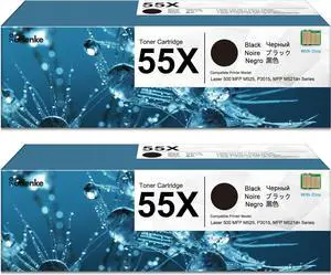CE255X 55X Black High Yield Toner Cartridge with Chip 2 Pack, 55X Toner Cartridge Replacement for HP 55X Toner 55A CE255A for Enterprise 500 MFP M525, Enterprise P3015, Pro MFP M521 Series Printer