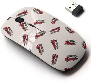 CJCBROES 2.4G Wireless Mouse with Cute Pattern Design for All Laptops and Desktops with Nano Receiver - Transportation Theme Firetruck Cartoon