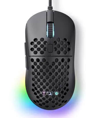 TMKB Falcon M1SE Ultralight Honeycomb Gaming Mouse, High-Precision 12800DPI Optical Sensor, 6 Programmable Buttons, Customizable RGB, Drag-Free Paracord, Ergonomic Wired Gaming Mouse - Matte Black