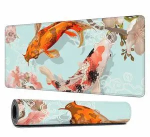 Y YIHANGBEST Fish Cherry Blossoms Mouse Pad Traditional Japanese Watercolor Harmonious Keyboard Mat Large Gaming Mousepad for Desk,Office,Bed 35.4"X15.7"