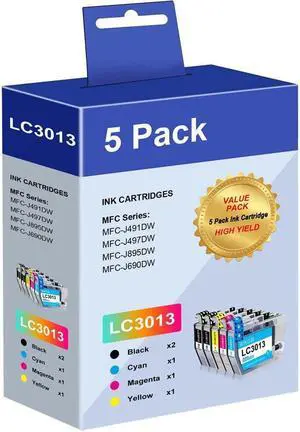 5-Pack LC3013 LC3011 Ink Cartridge replacement for Brother MFC-J895DW MFC-J497DW