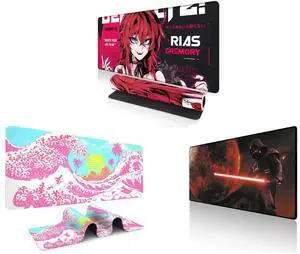 Alpha Fit Anime Gaming Mouse Pad XXL (35.4" x 15.7") - Pink Bunny Girl Waifu - Large Mouse Pad Extended - Extra Large Gaming Mouse Pads Ara Ara Senpai Style - 04 and Alpha Fit Black & White Great Wave Gaming Mouse Pad XXL (35.4" x 15.7") - Monochrome Ink Wash Japanese Art Desk Mat - Minimalist Setup with Stitched Edges and Alpha Fit Star Wars Gaming Mouse Pad XXL (31.5" x 11.8") - Darth Vader Dark Side Art - Large Mouse Pad Extended - Extra Large Gaming Mouse Pads Sith Lord Desk Mat 31