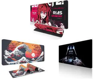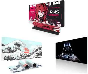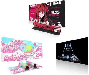 Alpha Fit Anime Gaming Mouse Pad XXL (35.4" x 15.7") - Crimson Red Haired Demon Girl - Large Mouse Pad Extended - Extra Large Gaming Mouse Pads Gothic Waifu Style - 01 and Alpha Fit Classic Great Wave off Kanagawa Gaming Mouse Pad XXL (35.4" x 15.7") - Traditional Blue Japanese Art Desk Mat - Non-Slip Rubber Base for Office and Alpha Fit Star Wars Gaming Mouse Pad XXL (31.5" x 11.8") - Darth Vader Dark Side Art - Large Mouse Pad Extended - Extra Large Gaming Mouse Pads Sith Lord Desk Mat 31