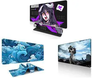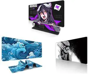 Alpha Fit Anime Gaming Mouse Pad XXL (35.4" x 15.7") - Dark Fantasy Succubus Girl - Large Mouse Pad Extended - Extra Large Gaming Mouse Pads Purple Waifu Style - 02 and Alpha Fit Classic Great Wave off Kanagawa Gaming Mouse Pad XXL (35.4" x 15.7") - Traditional Blue Japanese Art Desk Mat - Non-Slip Rubber Base for Office and Alpha Fit Star Wars Gaming Mouse Pad XXL (31.5" x 11.8") - Stormtrooper Shatter Black & White - Large Mouse Pad Extended - Sci-Fi Galaxy Empire Desk Mat 12