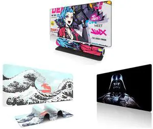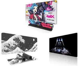 Alpha Fit Anime Gaming Mouse Pad XXL (35.4" x 15.7") - Blue Punk Graffiti Girl - Large Mouse Pad Extended - Extra Large Gaming Mouse Pads Loose Cannon Style - 03 and Alpha Fit Black & White Great Wave Gaming Mouse Pad XXL (35.4" x 15.7") - Monochrome Ink Wash Japanese Art Desk Mat - Minimalist Setup with Stitched Edges and Alpha Fit Star Wars Gaming Mouse Pad XXL (31.5" x 11.8") - Darth Vader Dark Side Art - Large Mouse Pad Extended - Extra Large Gaming Mouse Pads Sith Lord Desk Mat 31