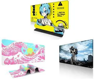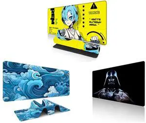 Alpha Fit Anime Gaming Mouse Pad XXL (35.4" x 15.7") - Cyberpunk Blue Haired Girl - Large Mouse Pad Extended - Extra Large Gaming Mouse Pads Yellow Caution Style - 07 and Alpha Fit Classic Great Wave off Kanagawa Gaming Mouse Pad XXL (35.4" x 15.7") - Traditional Blue Japanese Art Desk Mat - Non-Slip Rubber Base for Office and Alpha Fit Star Wars Gaming Mouse Pad XXL (31.5" x 11.8") - Darth Vader Dark Side Art - Large Mouse Pad Extended - Extra Large Gaming Mouse Pads Sith Lord Desk Mat 31