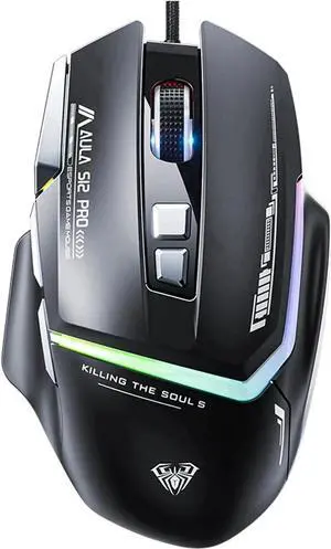 AULA S12Pro White Wired Gaming Mouse,12800 DPI Optical Gamer Mouse with RGB Backlit,8 Programmable Buttons,Software Supports DIY Keybinds Rapid Fire Button