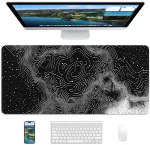 Large Desk Mat with Topographic Pattern, 31.5 x 15.7 inches, White and BlackGaming Mouse Pad with Non-Slip Base