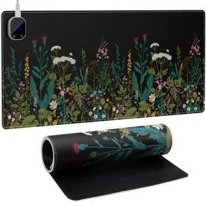 iCasso Heated Mouse Pad, XL Big Aesthetic Desk Pad with 4 Heating Levels & 4 Auto Shut-Off Levels for Computer Keyboard, 31.5" x 13" Large Safe Desk Mat Hand Warmer for Home Office Work (Weeds)