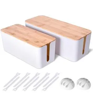 2 Pack Large Cable Management Box Wooden Style Cord Organizer and Cover for TV Wires, Computer, Router, USB Hub and Under Desk Power Strip Safe ABS Material and Baby-Pets Proof Lock (White)