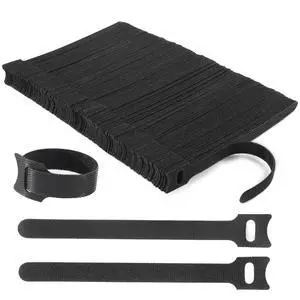 50 Pcs Reusable Fastening Cable Ties, Microfiber Cloth 12 Inch Hook and Loop Cord Ties, Black