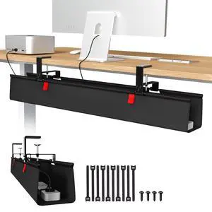 No Drill Under Desk Cable Management Tray, 36" Cord Organizer for Table, Clamp/Screw Mount Desk Cable Management, Premium Fabric Cable Management Tray for Office, Home