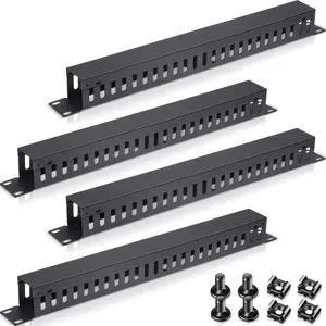 4 Pack 1U 19 Inch Cable Manager 24 Slot Horizontal Rack Mount Wire Management Server Rack Cable Management Metal Finger Duct Wire Organizer with Cover and Mounting Screws for Network Cabinet, Black